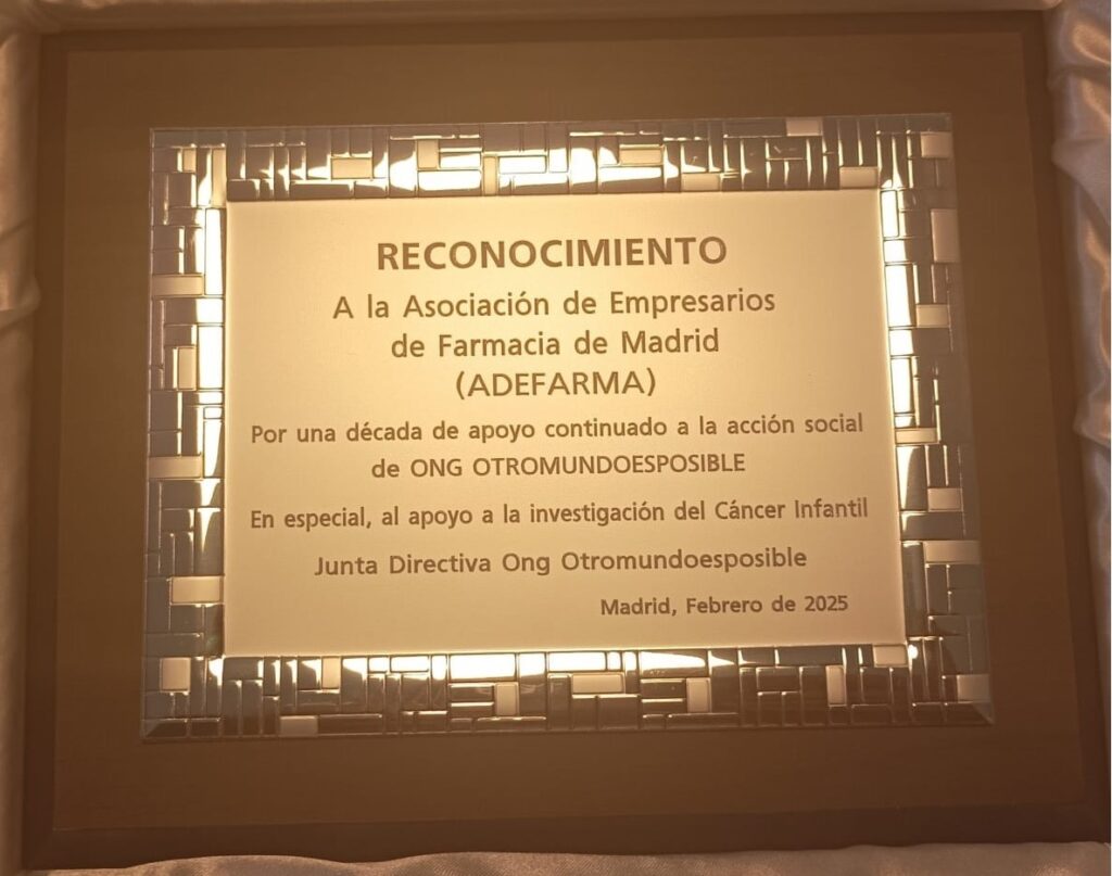 Ong Otromundoesposible reconoce el apoyo de ADEFARMA